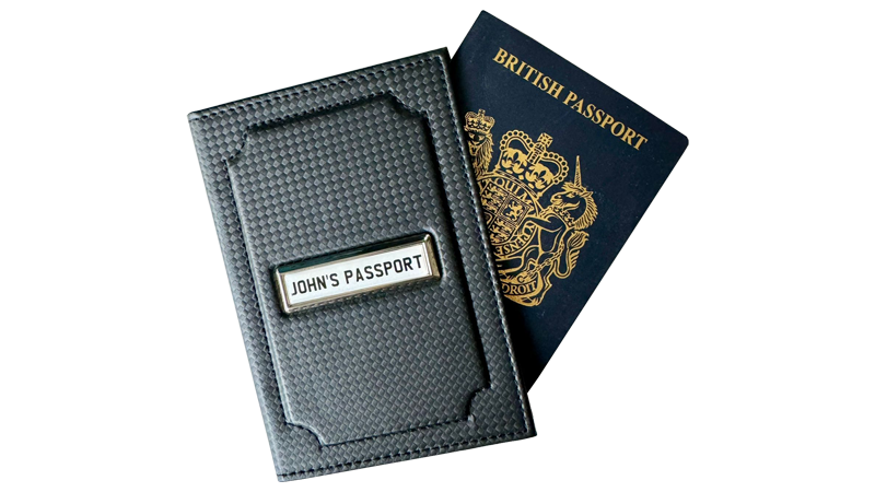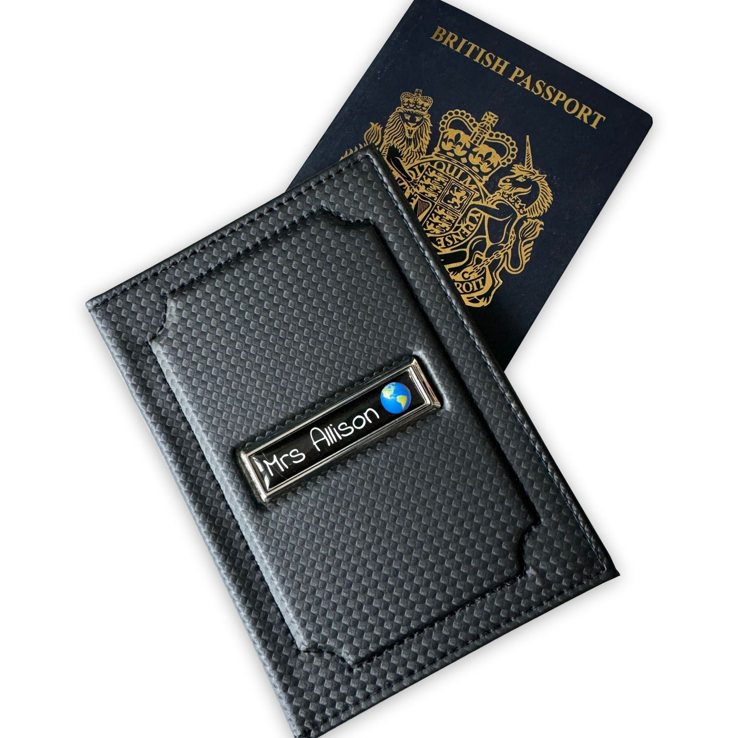 Passport & Card Holder Wallet PU Leather personalised with Name or Flag Black Carbon